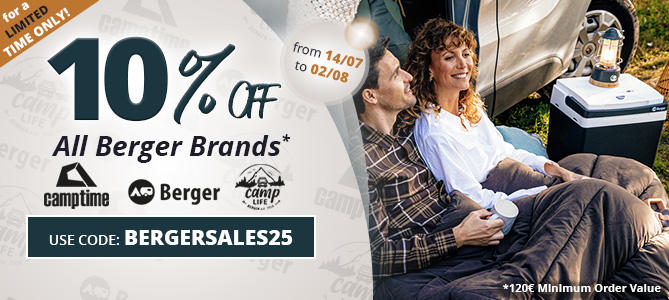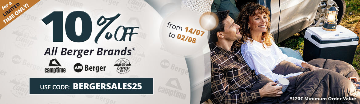 Take advantage of an extra 10% discount on our 3 Brands: Camptime, Camplife and of course Berger.